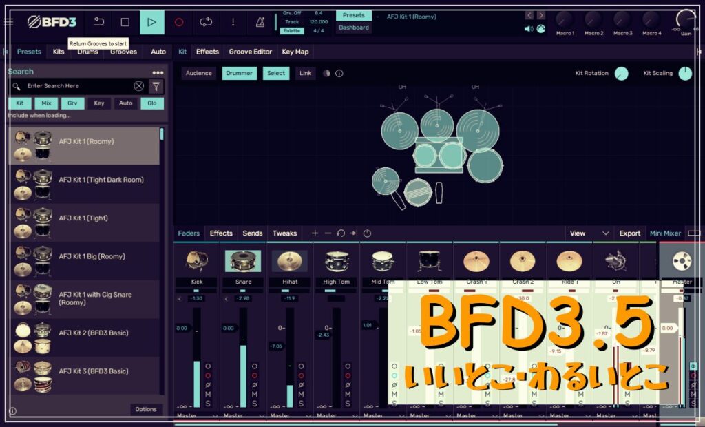 本日はBFD3.5について“浅く”語りたいと思います。一応音源も用意しとります。 一体誰得なんだ〜っ!てなりそうですけど(笑)、細かい操作の方法とかは探せばいくらでもありますから、そんな専門的な事を私がやるはずもなく能力もない。適材適所ってもんがあ... DTM