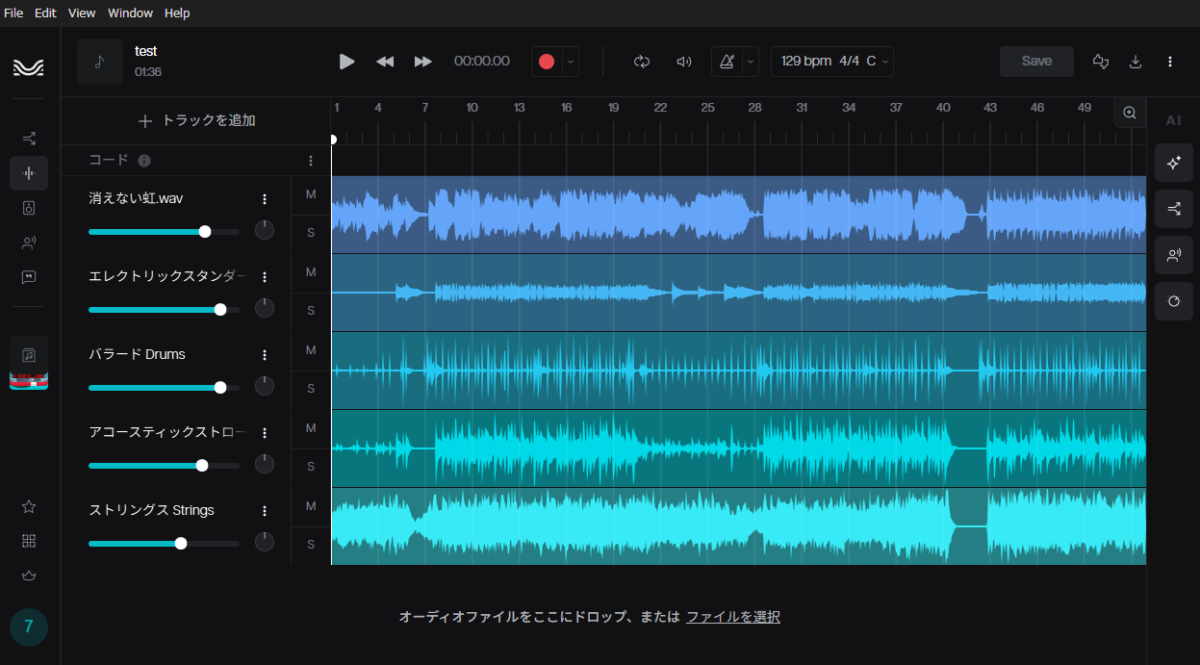改めてコイツの機能を再確認してみると、レイヤー追加というものがあるらしく、元となるオーディオに合わせて、ベースやドラムなんかを生成できるみたいなんですよ。そら話は変わりますわな。