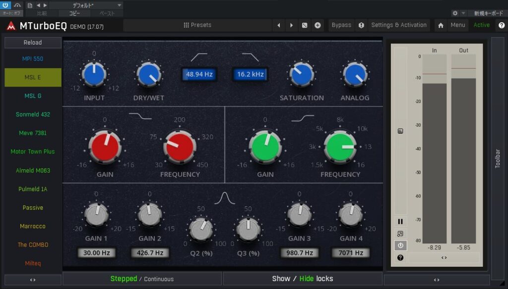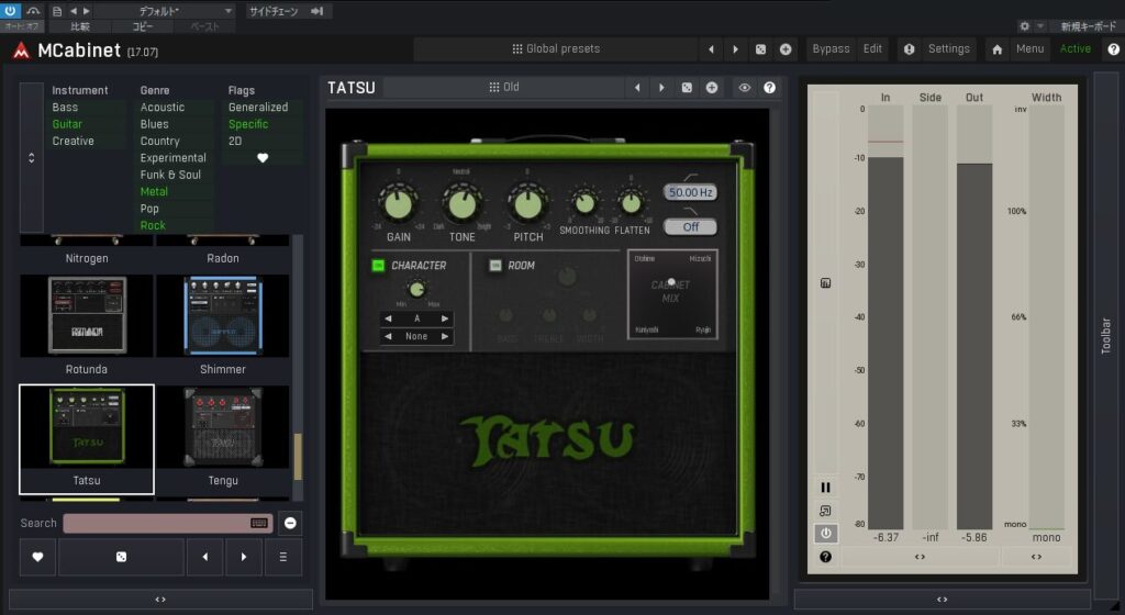 MCabinetでも何となく感じてたのですが、Meldaの製品には日本っぽいモデル名とかプリセット名とか結構あって、実は密かに親日なのかもしれないですねぇ。好感度、上がりますやん!