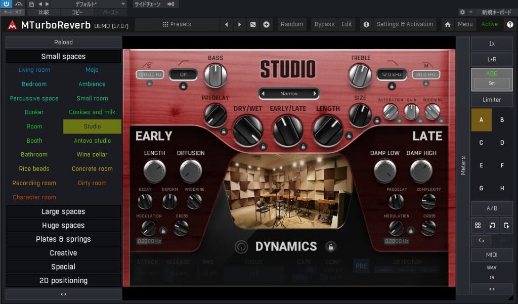 Turboシリーズの中ではお高めですけど、俺はもうアルゴリズムリバーブはこれでいいかなぁ。欲しいなぁ〜(笑)。IR系のリバーブはすでにいくつか持っているので、手持ちの武器としてとっても物欲を刺激してくれます。