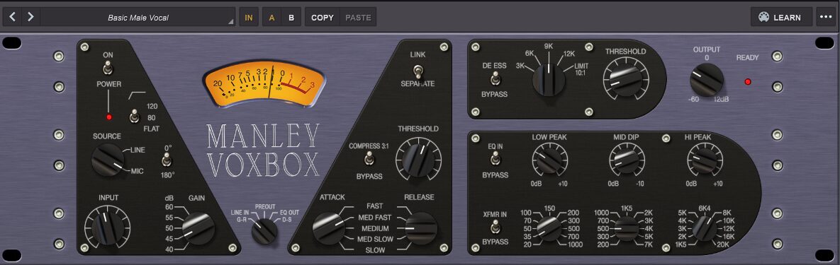高嶺の花だったManleyのこのボーカル用チャンネルストリップも有り難い事に今や我が手の中に。各機能がブロック毎に配置された非常に分かりやすいUIで見た目より使いやすい。こんな私でも余裕で理解可能。