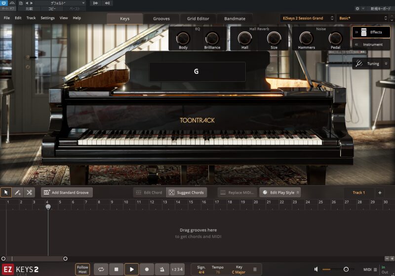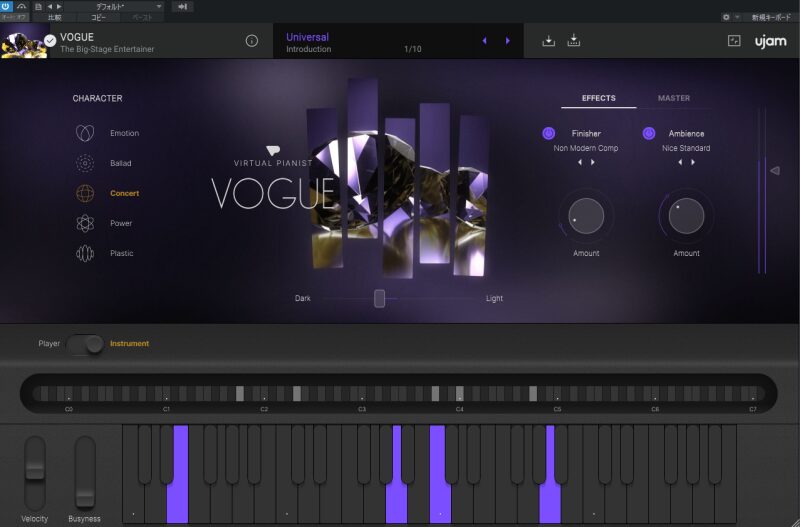 ujamで満足いかない、もしくは時間がある時はコチラの方が断然良い結果になりますね。EZkeys2は音も機能も素晴らしく、それでいてCPU負荷が軽いのも他の音源より優位性があります。