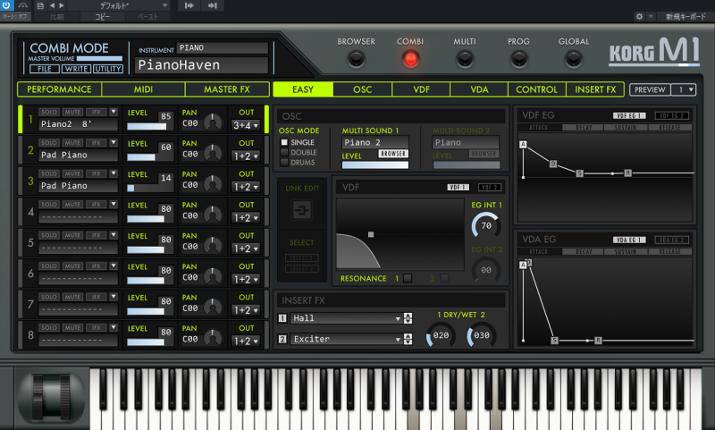 M1とは微妙にGUIは異なりますが、同じKorgの製品なので直感的に操作が可能です。仕組みが同じなんでね。コチラもM1同様膨大なプリセットがあり、サクッと素敵な音を出したい人にはとても有り難いです。