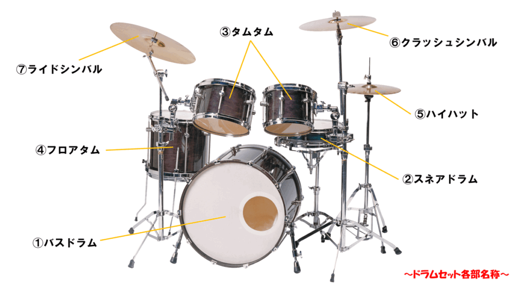 ①バスドラム – Bass drum